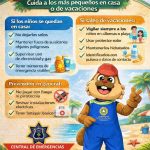 En caso de salir de vacaciones a lugares como albercas o balnearios, se recomienda mantener una vigilancia permanente, aplicar protector solar, mantener a los menores hidratados y procurar que porten alguna identificación con datos de contacto.