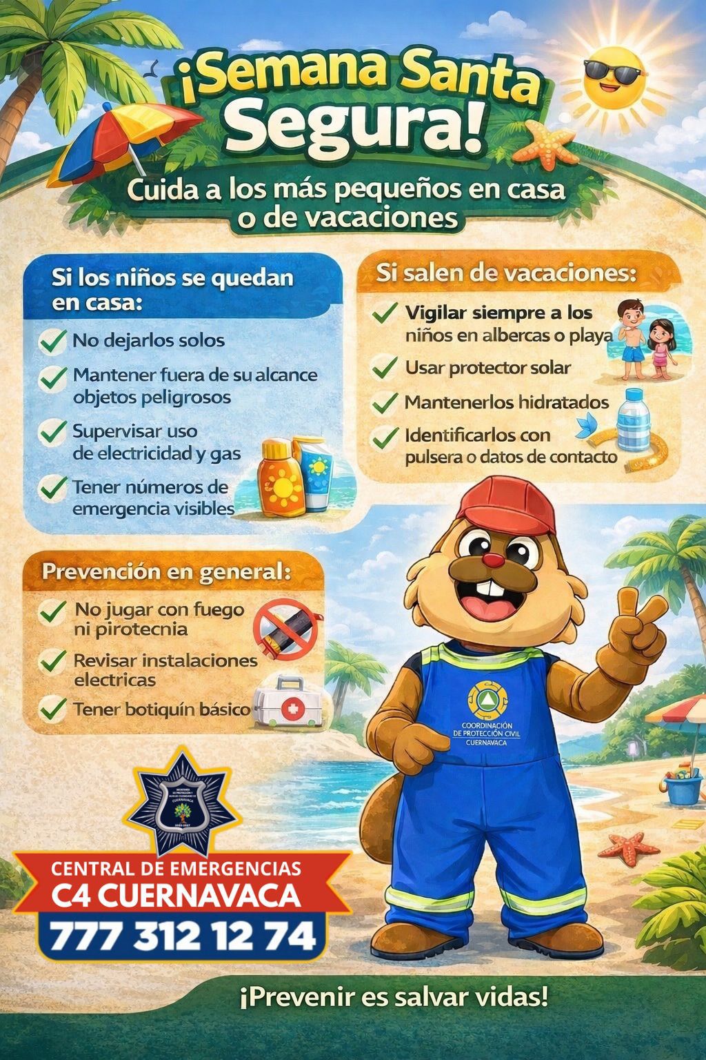 Cuernavaca, Morelos.– Con el objetivo de prevenir accidentes durante el periodo vacacional de Semana Santa 2026, el Ayuntamiento de Cuernavaca hizo un llamado a reforzar las medidas de prevención en el hogar, especialmente para la protección de niñas y niños.
