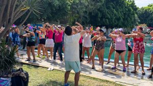La actividad se llevó a cabo en el balneario Agua Linda, donde participaron mujeres de ambos municipios, incluyendo integrantes de la Escuela Deportiva Municipal de Natación para Adultos Mayores de Cuernavaca.